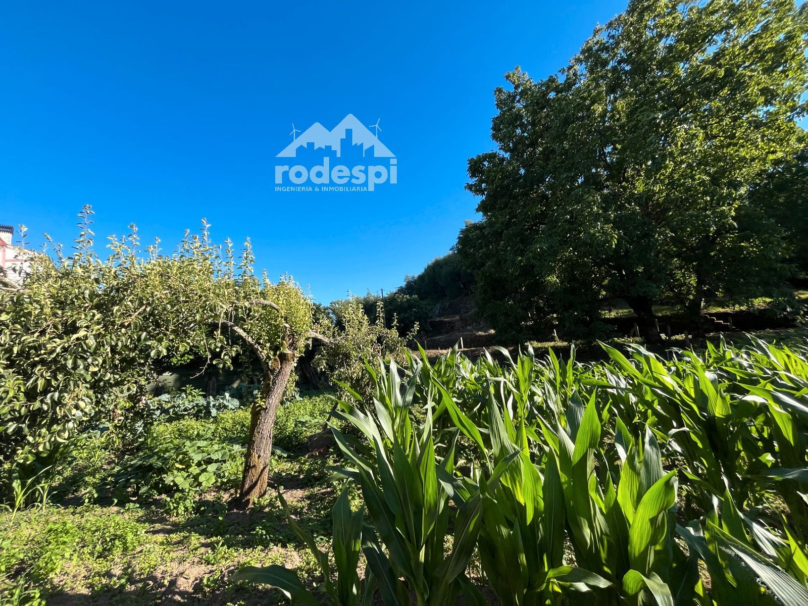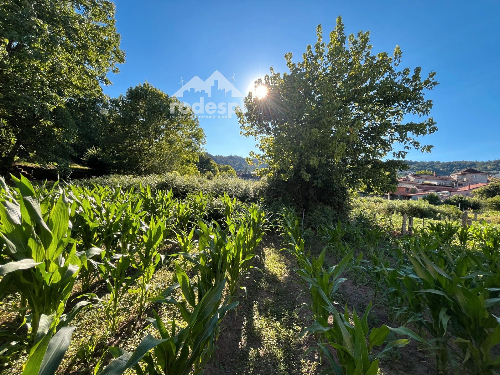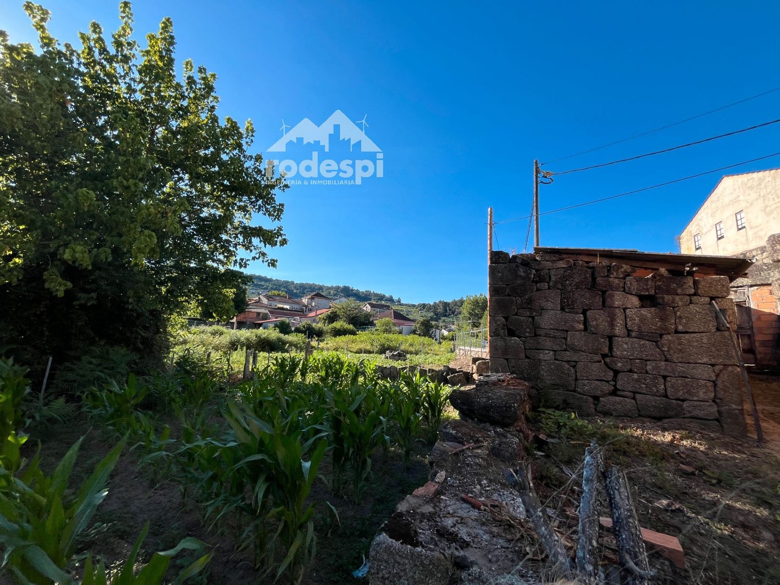 Elementos naturales: Un pequeño regato cruza lateralmente la finca, añadiendo un toque de encanto y frescura al entorno.