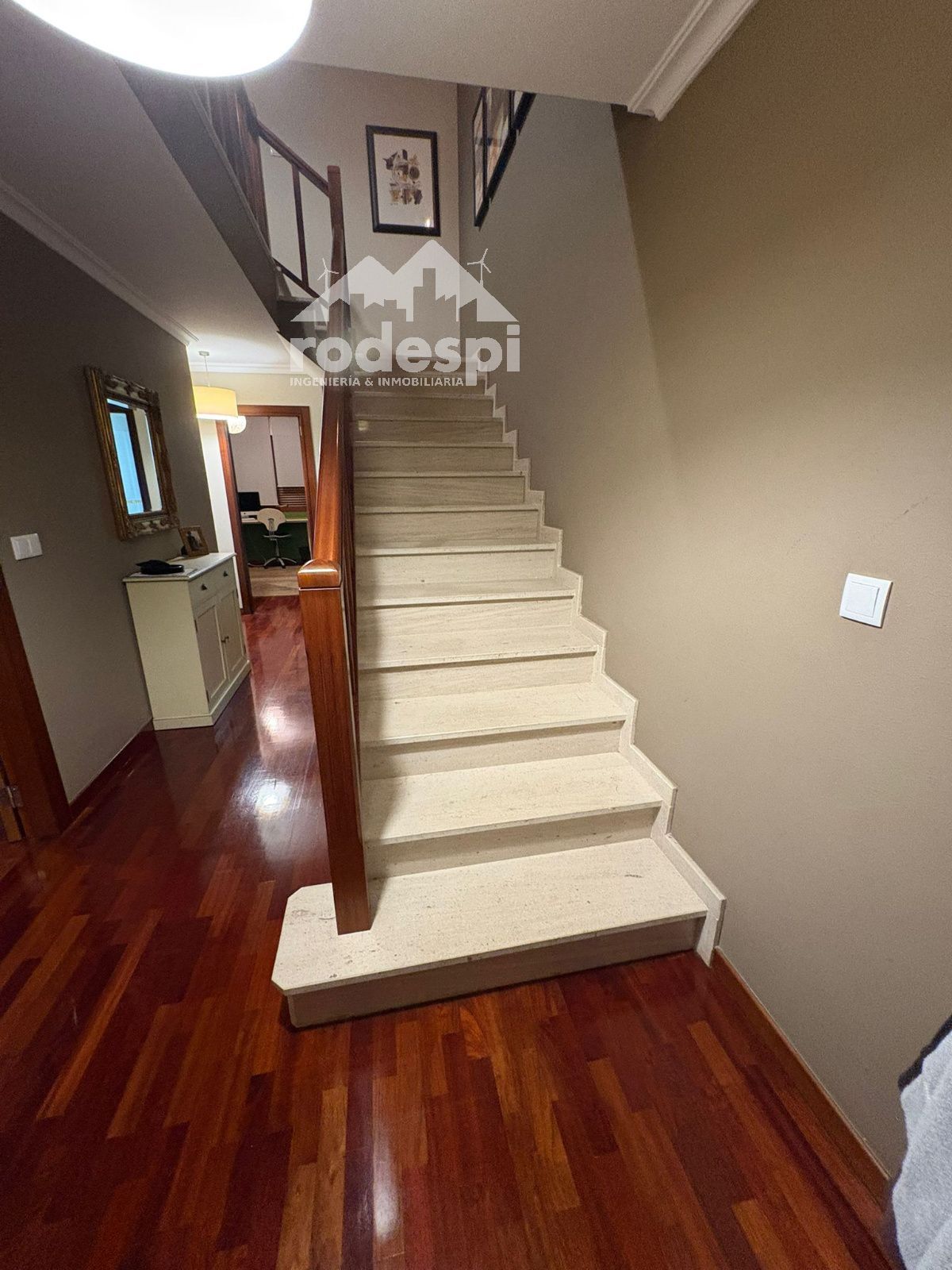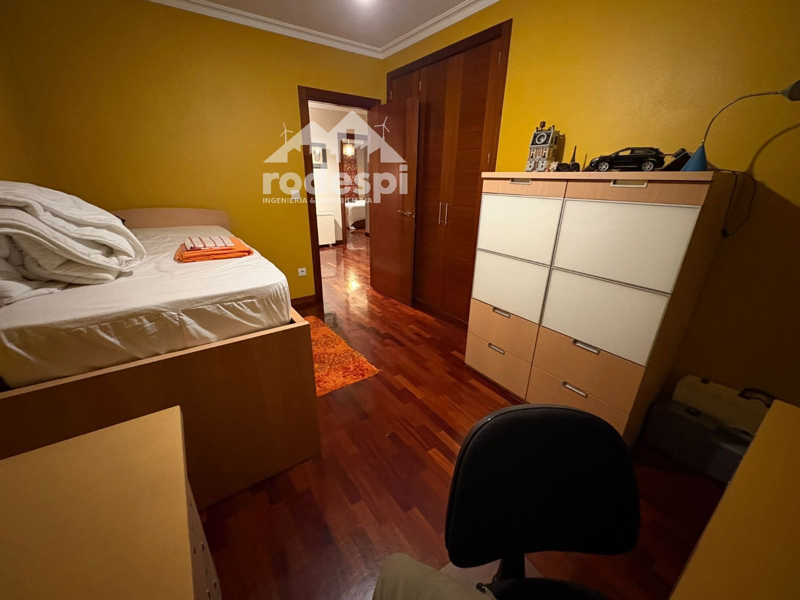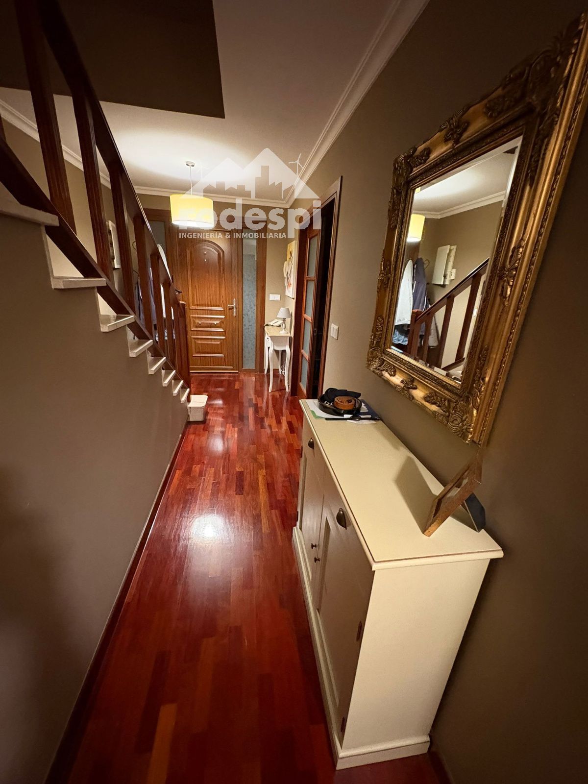 Precioso chalet en el centro de Ponteareas, con una ubicación inmejorable y excelentes calidades. La vivienda dispone de 5 amplios dormitorios y tres baños, uno de ellos en suite. El dormitorio principal cuenta además con un vestidor hecho a medida, perfectamente integrado y con gran capacidad de almacenaje.
